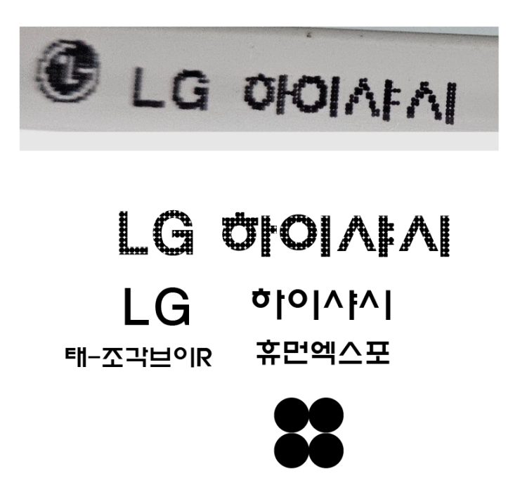 가장 비슷한 폰트는 하이샤시는 휴먼엑스포폰트 LG는 태-조각브이폰트입니다.